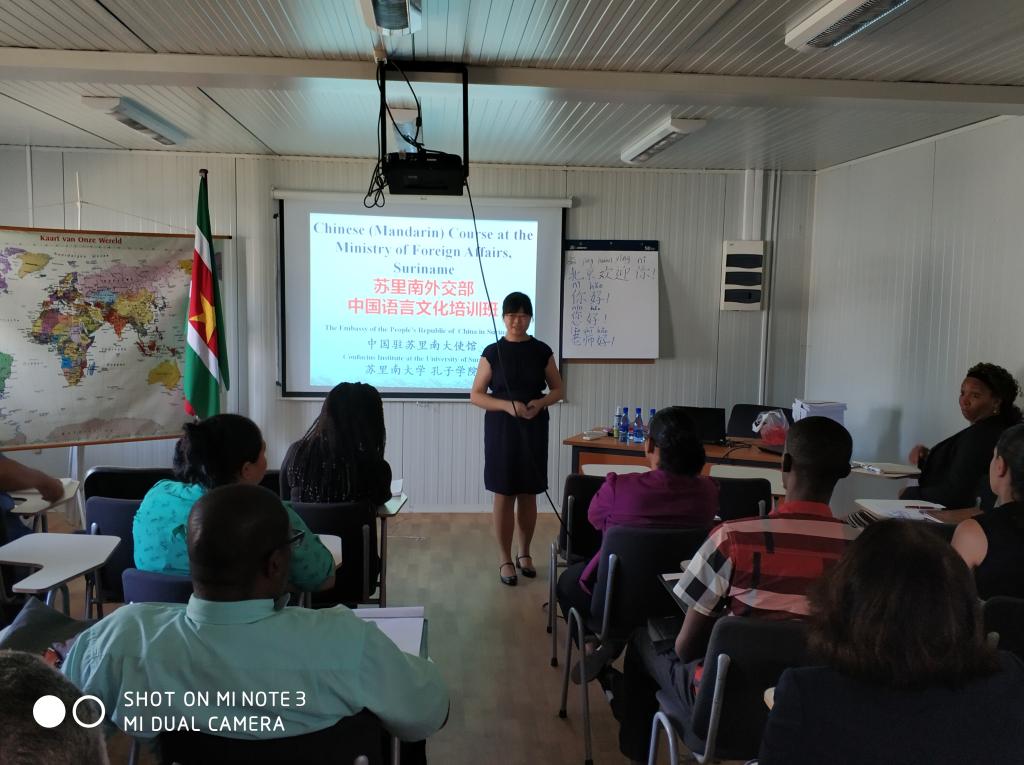 当地时间4月17日下午,应苏里南外交部和中国驻苏里南大使馆的要求,我校承办的苏里南大学孔子学院开设的“苏里南外交部中国语言文化培训班”正式开课,来自苏里南外交部、教育部、商务部的30多名官员参加了培训班的学习。