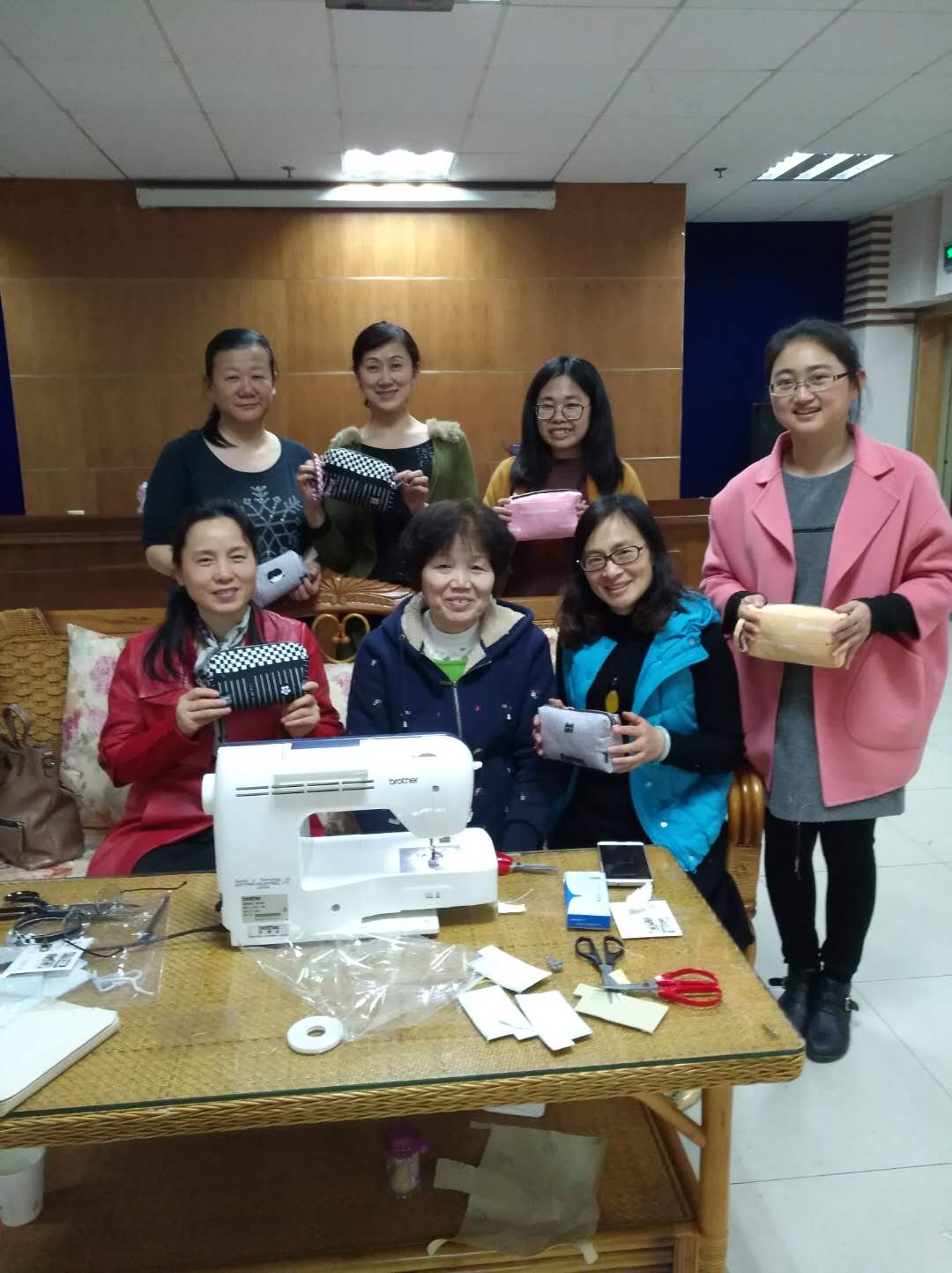 活动当天,女教职工撸起袖子穿针引线,剪纸型、缝拉链、装拉链二头布环、缝合四角、做龙虾扣提手,40位心灵手巧的女教职工在老师的指导下按步骤一一完成制作。经过5个小时的手工活动,一只只精美的手提小包呈现眼前,看到自己的劳动成果都露出了满意的笑容。平时身处教育第一线的她们此时充分展示了超强的动手能力,个个都是女红高手。