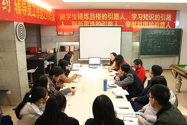 为促进辅导员队伍的建设与发展,12月5日下午在7号楼524召开“经生有约”辅导员工作室之约读会。与会人员有党委学工部副部长黄黎,经管学院党委副书记黄新海,学工办主任、团委书记张孝凤以及学院各位辅导员、辅导员助理。